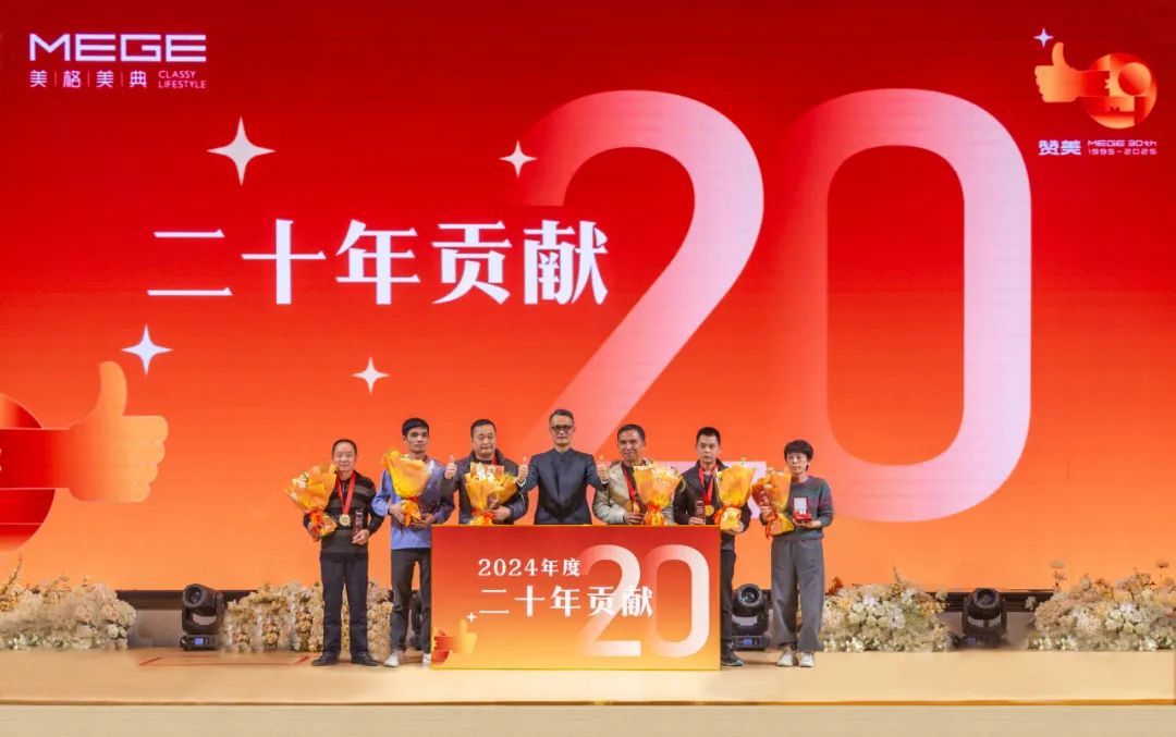 感恩,讓美格的幸福與溫暖不斷傳遞,猶如一雙隱形的翅膀,激勵著我們向上、向善——盛典現場,集團隆重頒發了《大美之星》、《大美團隊》、《十年忠誠》、《二十年貢獻》等榮譽,每一份獎章,都是美格人汗水與智慧的結晶,正是你們,讓美格大家庭充滿力量。