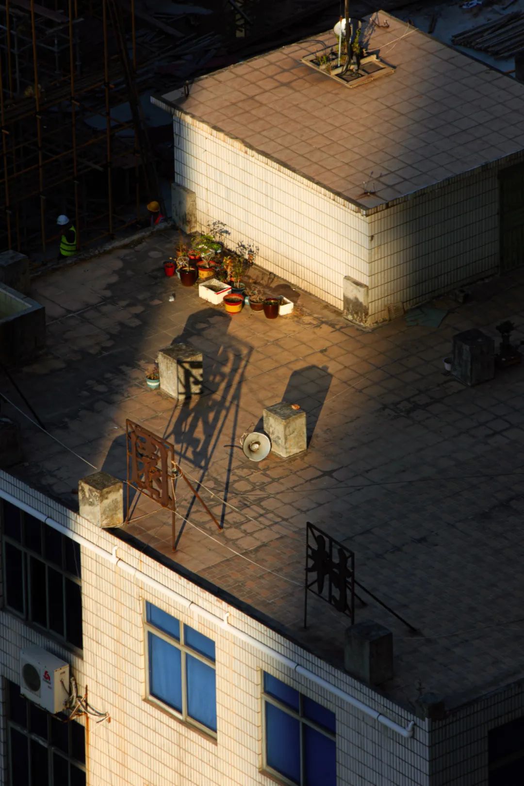 “幀”,是快門的藝術。當一縷陽光照在了對面的建筑工地上,作者便用長焦鏡頭,拍下“一幀之美”。