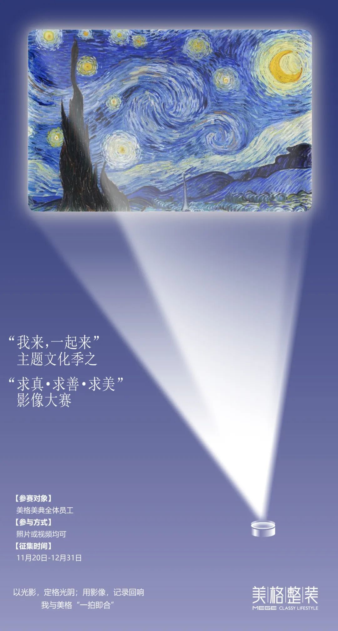 創意在idea風暴里,也在真實影像中。以光影,定格光陰;用影像,記錄回響,11月20日起,美格開啟影像大賽活動,為員工開放展示自我、相互欣賞的平臺,用鏡頭表達“求真·求善·求美”,與美格一拍即合。