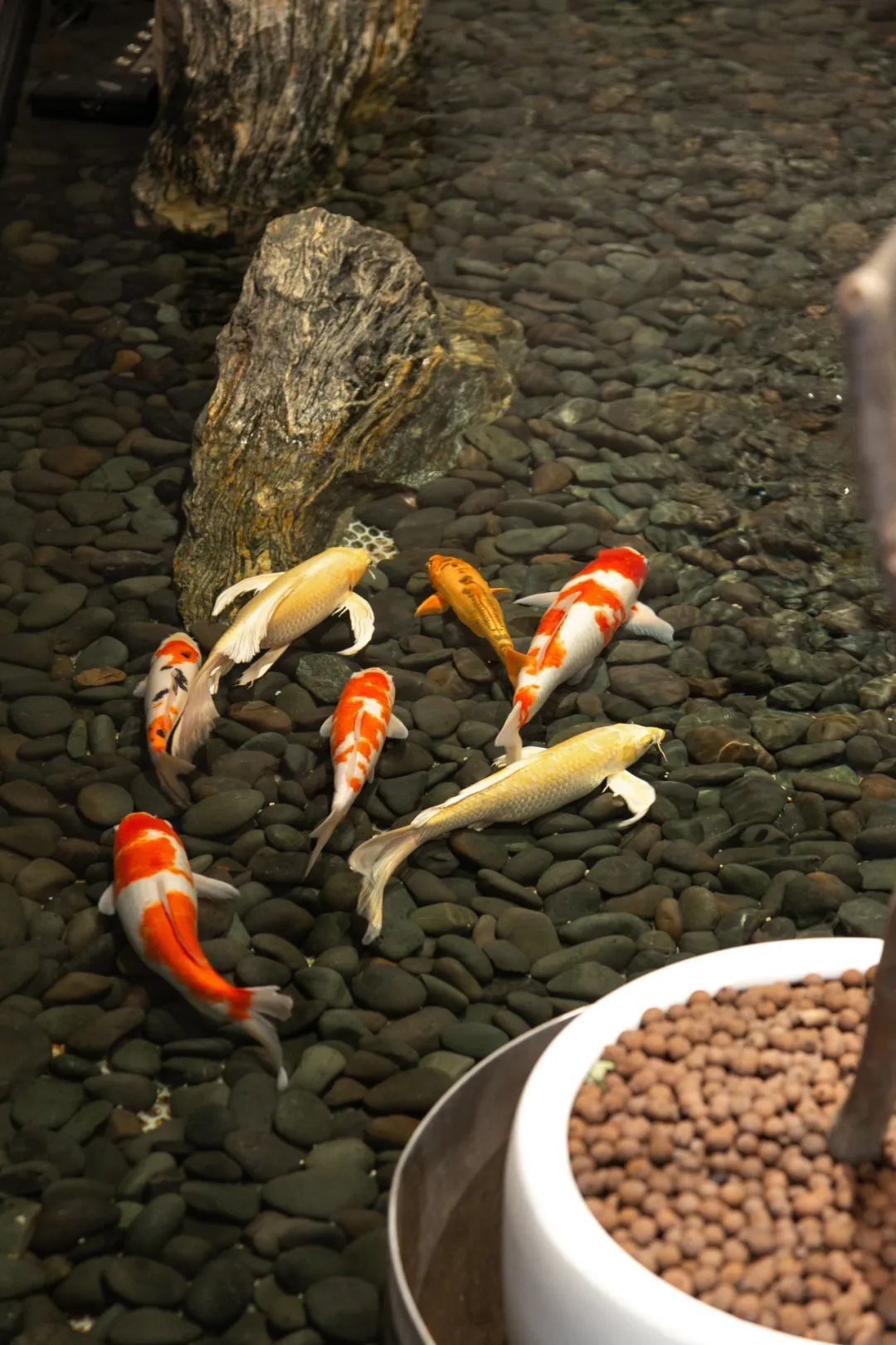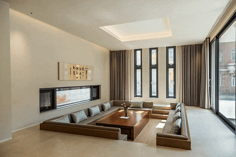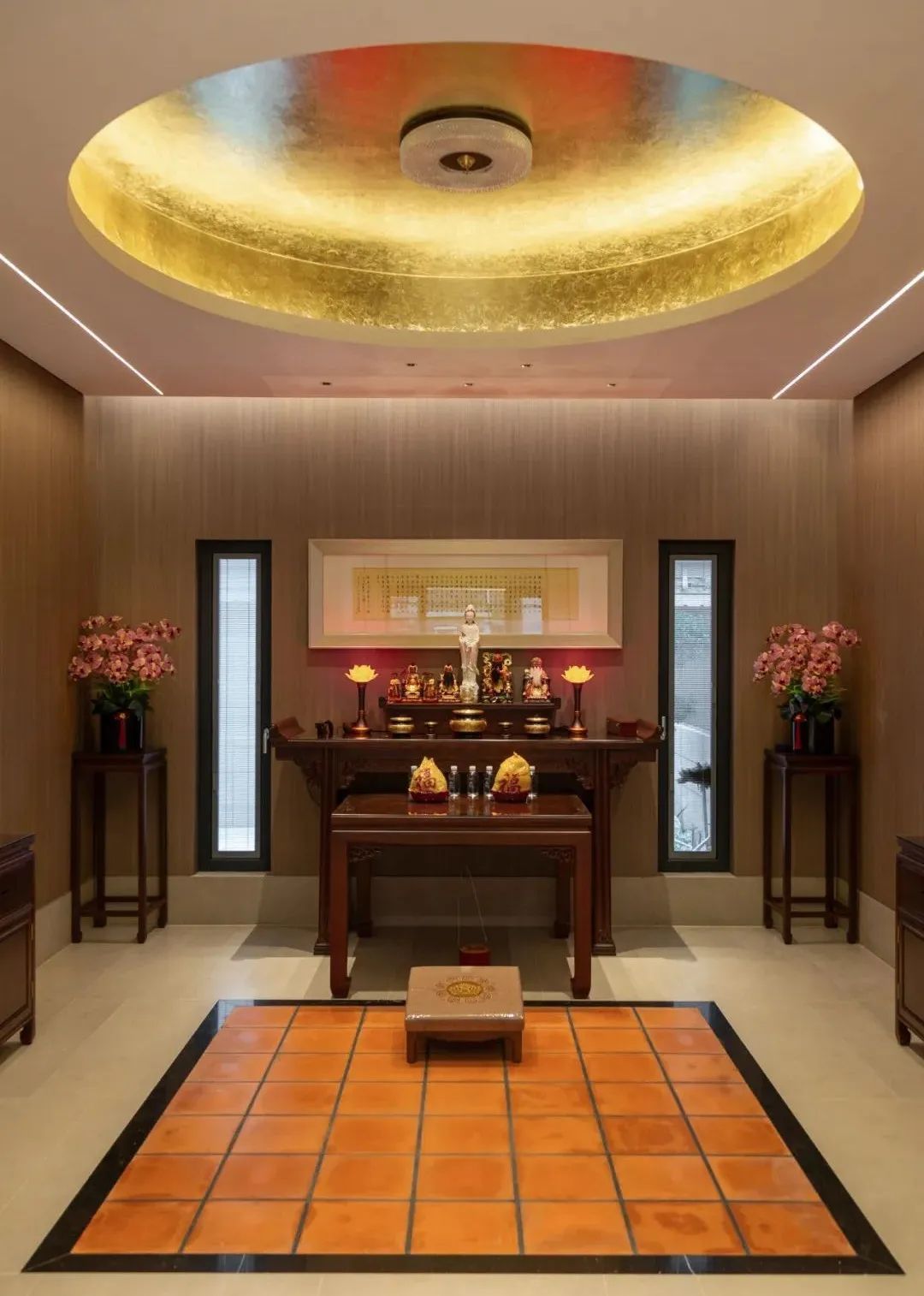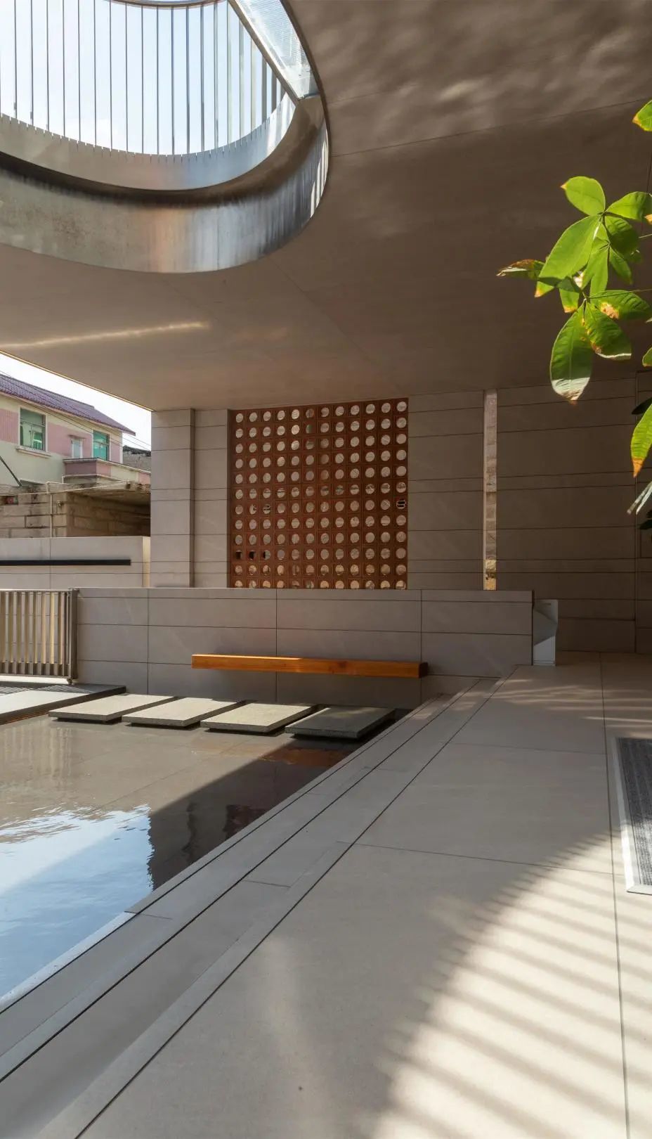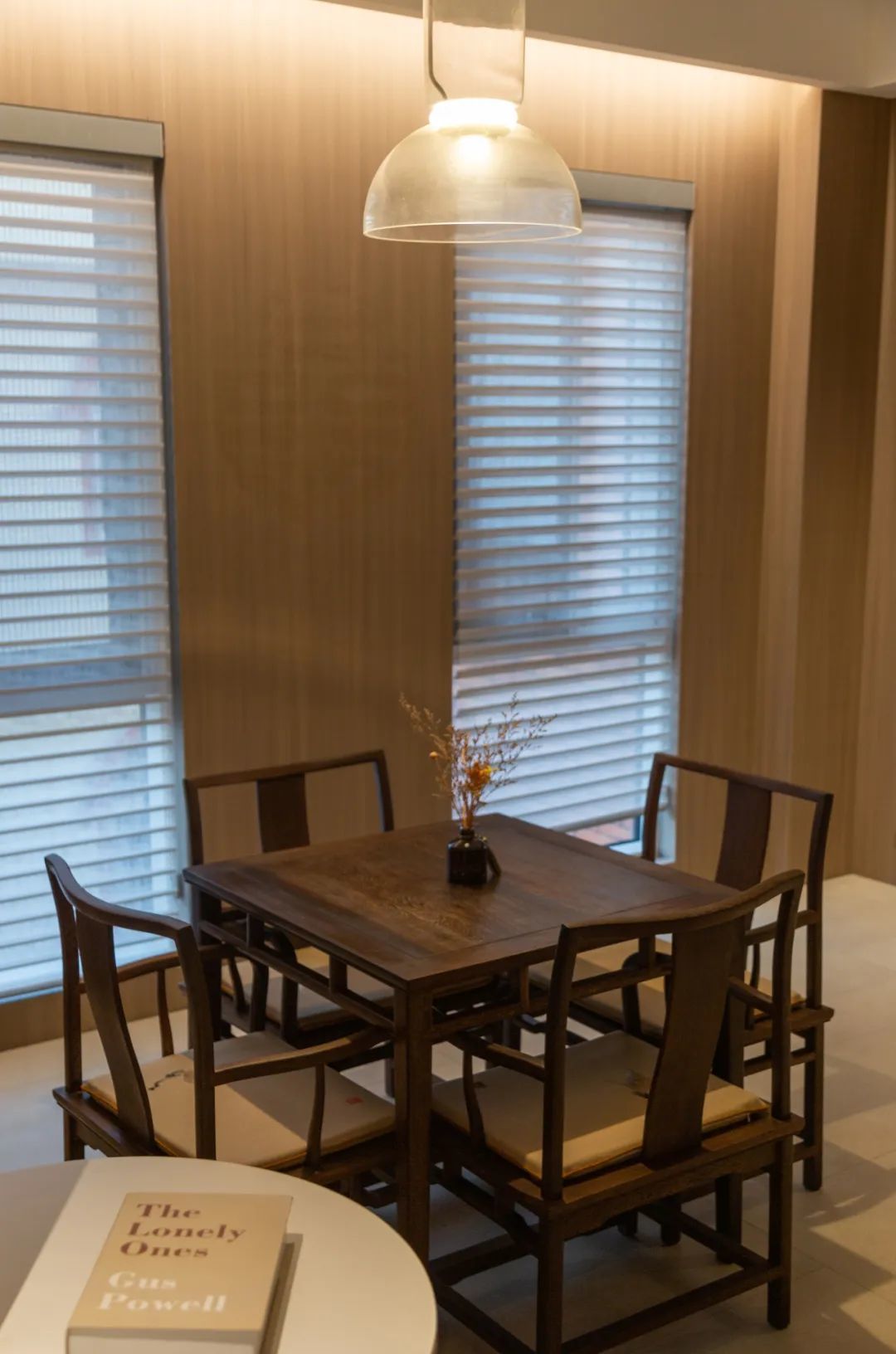 從水景走入室內,一樓有下沉式會客廳、茶室、餐廳、民俗廳,朗潤疏闊的動線,營造生活的舒適與松弛。
