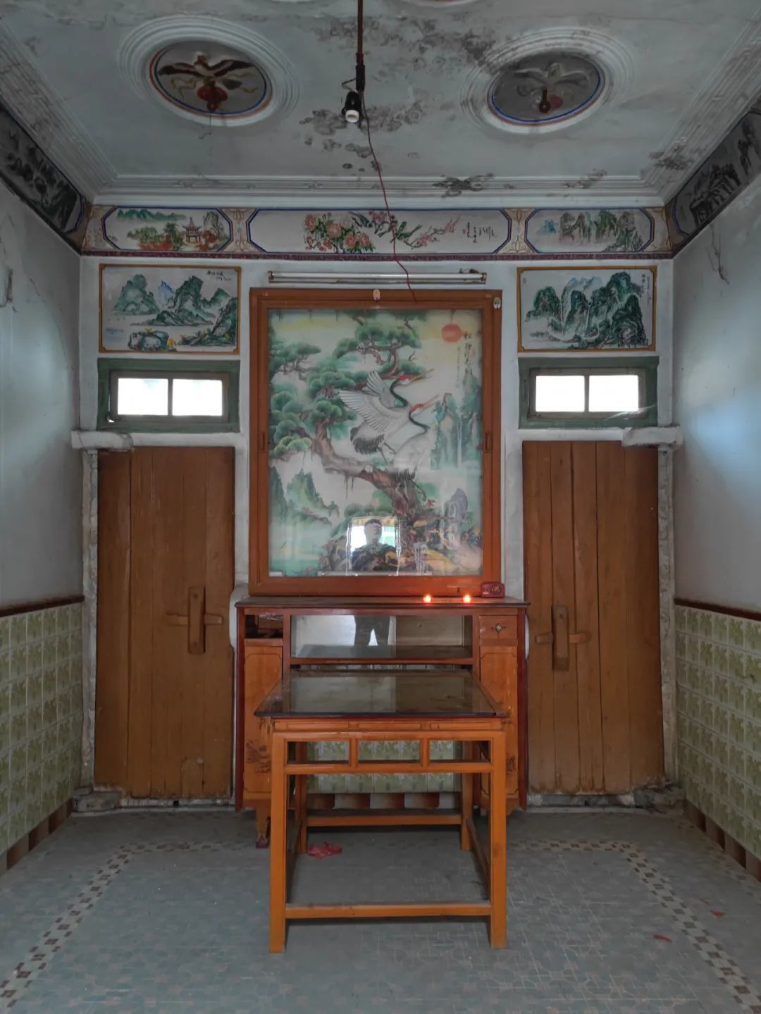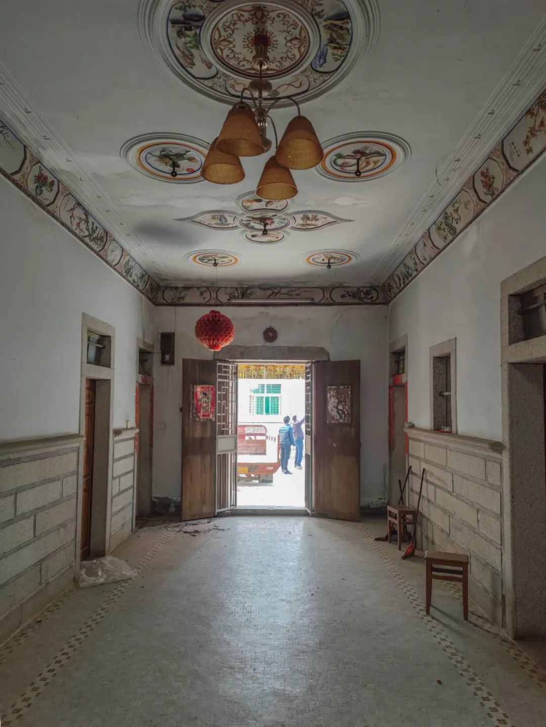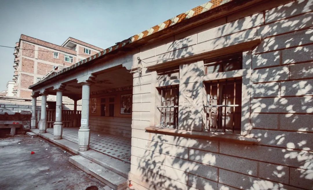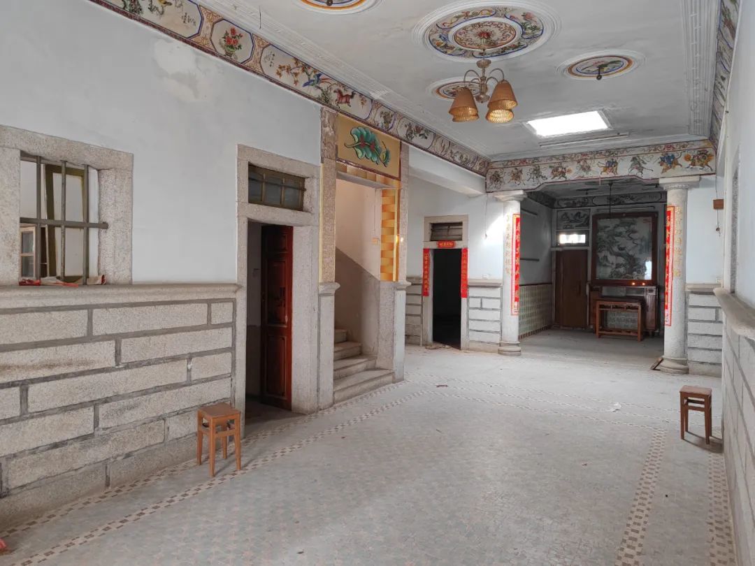 只有一層的建筑,有極具閩南特色的雕龍畫棟,有惠安傳統水泥,也有15cm×15cm的唐山磚,地面鋪的是當時流行的馬賽克磚,頗有“中洋結合”的味道。