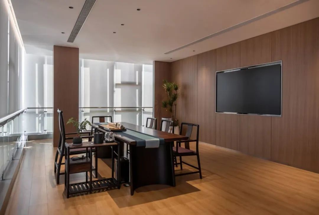 不同空間,量身而設。董事長辦公室注重品質的呈現,茶室則強調“聚”不止于聚,營造的是一種雅、閑、慧的氛圍。