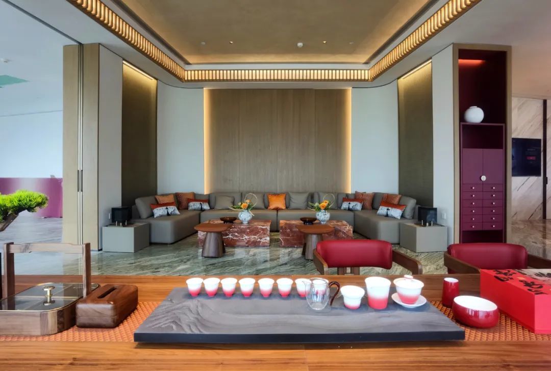 會所多處融合了東方文化,比如瓷器、茶具、藝術品等陳設,凝聚了東方美學與工藝的文化元素。