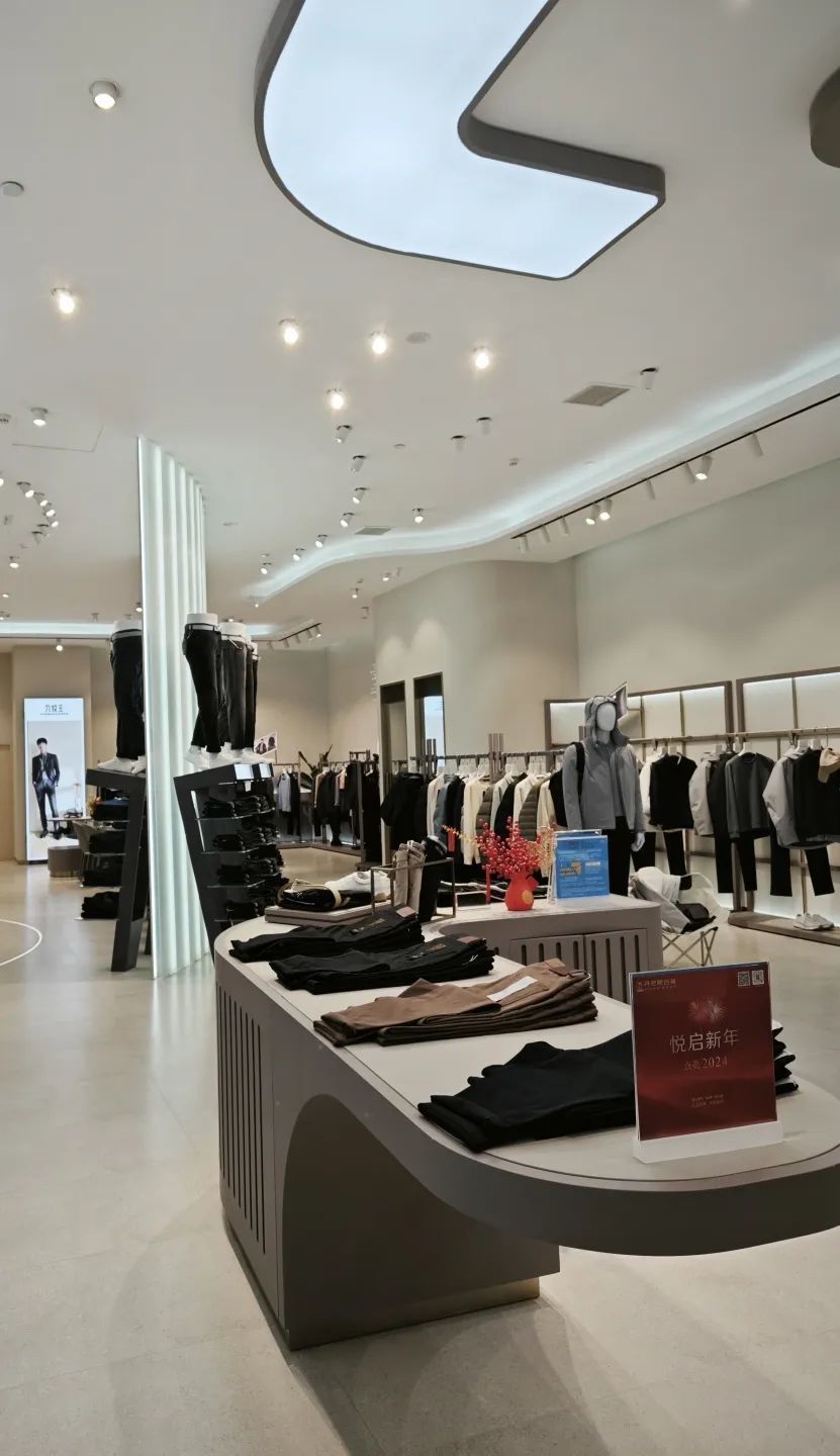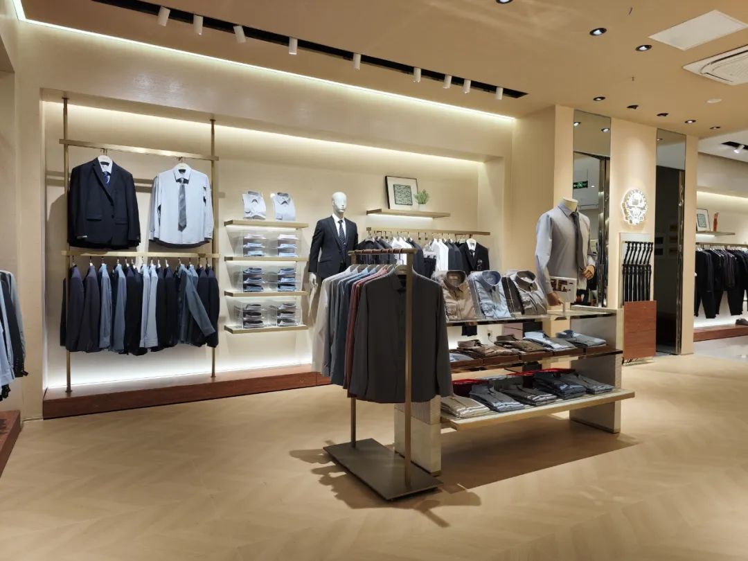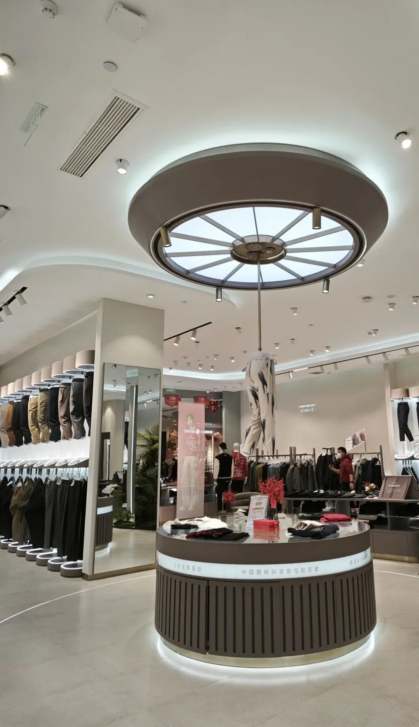 不是簡(jiǎn)單的復(fù)制黏貼,美格美典因地制宜,為九牧王提供定制化的貨架服務(wù)。在九牧王鄭州正弘?yún)R購(gòu)店,熠熠生輝的高柜一覽無(wú)余,臻藝精作的男褲陳列其間,褲裝與空間,交相輝映,感官氛圍與購(gòu)物體驗(yàn)進(jìn)階升級(jí)。