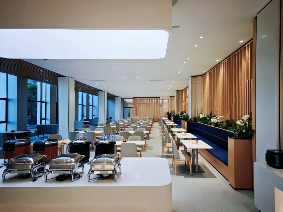 開放式就餐區(qū)、自助餐區(qū)、特色包廂,不同就餐區(qū)“有序而不同”,呼應潯興拉鏈開放與包容的文化特質,滿足多元就餐需求。