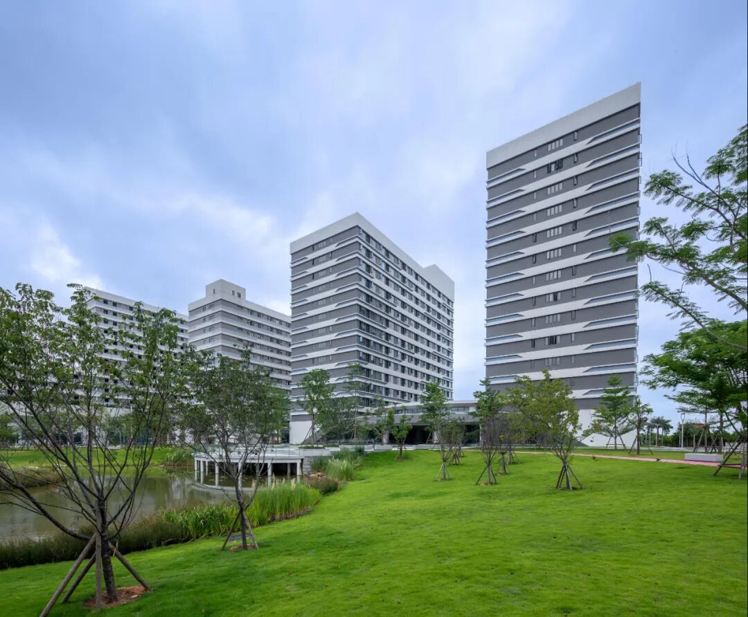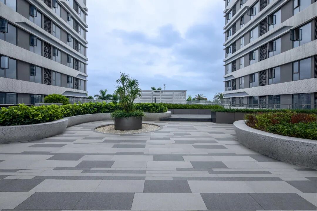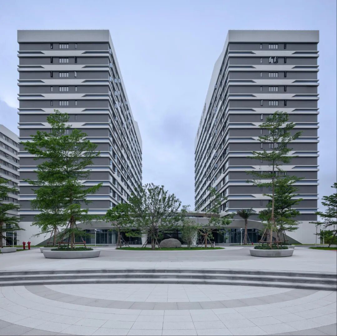 不同于常見的玻璃幕墻大樓,公寓二樓特別設計“空中花園”,與產業園綠地景觀相呼應,宛如一個會呼吸的有機體,彰顯生態與自然之美,為員工提供放松身心的綠色空間。
