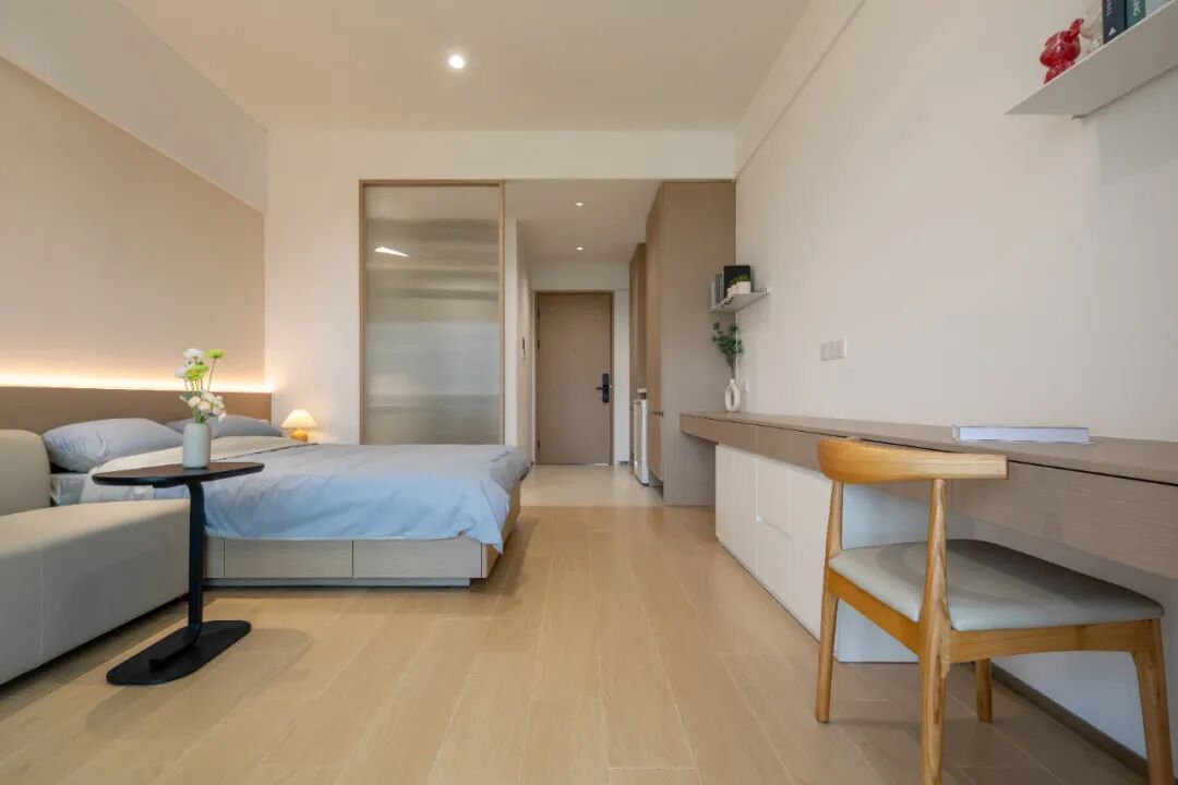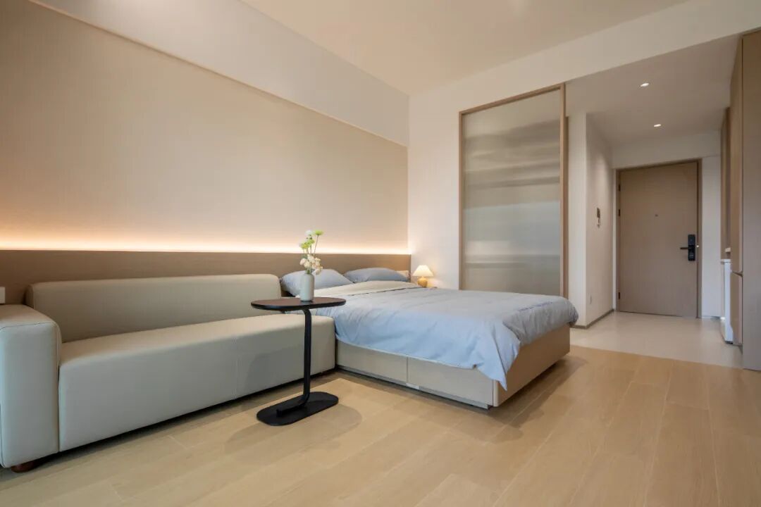 “麻雀雖小,五臟俱全”,單身房的設計為實用主義,沒有過多的裝飾,注重光線、材料和空間布局,在“小天地”里營造出隨性由心的生活,汲取能量、釋放活力。